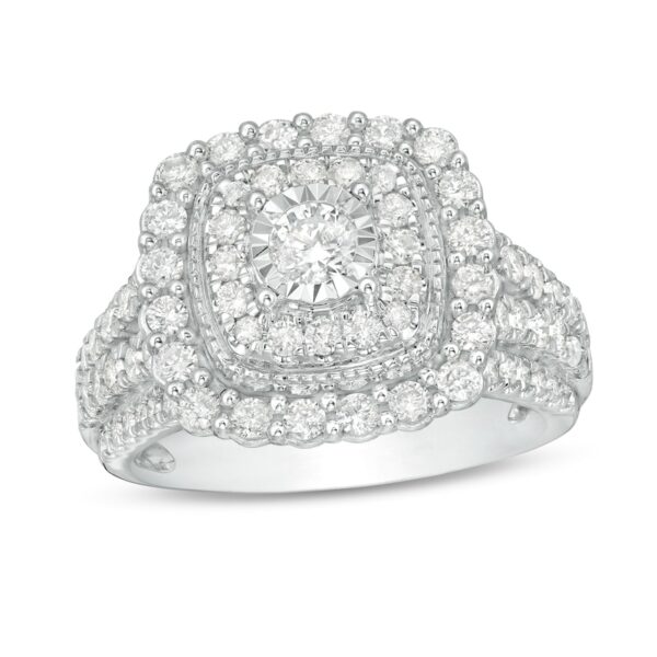 1-1/2 CT. T.W. Diamond Double Cushion Frame Engagement Ring in 10K White Gold
