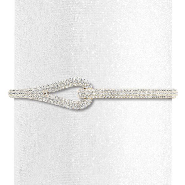 A dazzling symbol of your inseparable bond, this beautiful bracelet features round diamonds set in the interlocking links. This 14K yellow gold bracelet features a total of 4 carats of diamonds and features a spring-lock clasp.